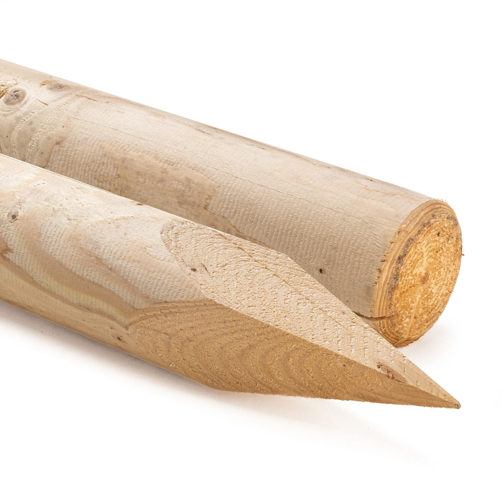 Dřevěná kulatina hladce ofrézovaná, na jednom konci upravená fazetou a na druhém špičkou pro snadné zaražení do země.
