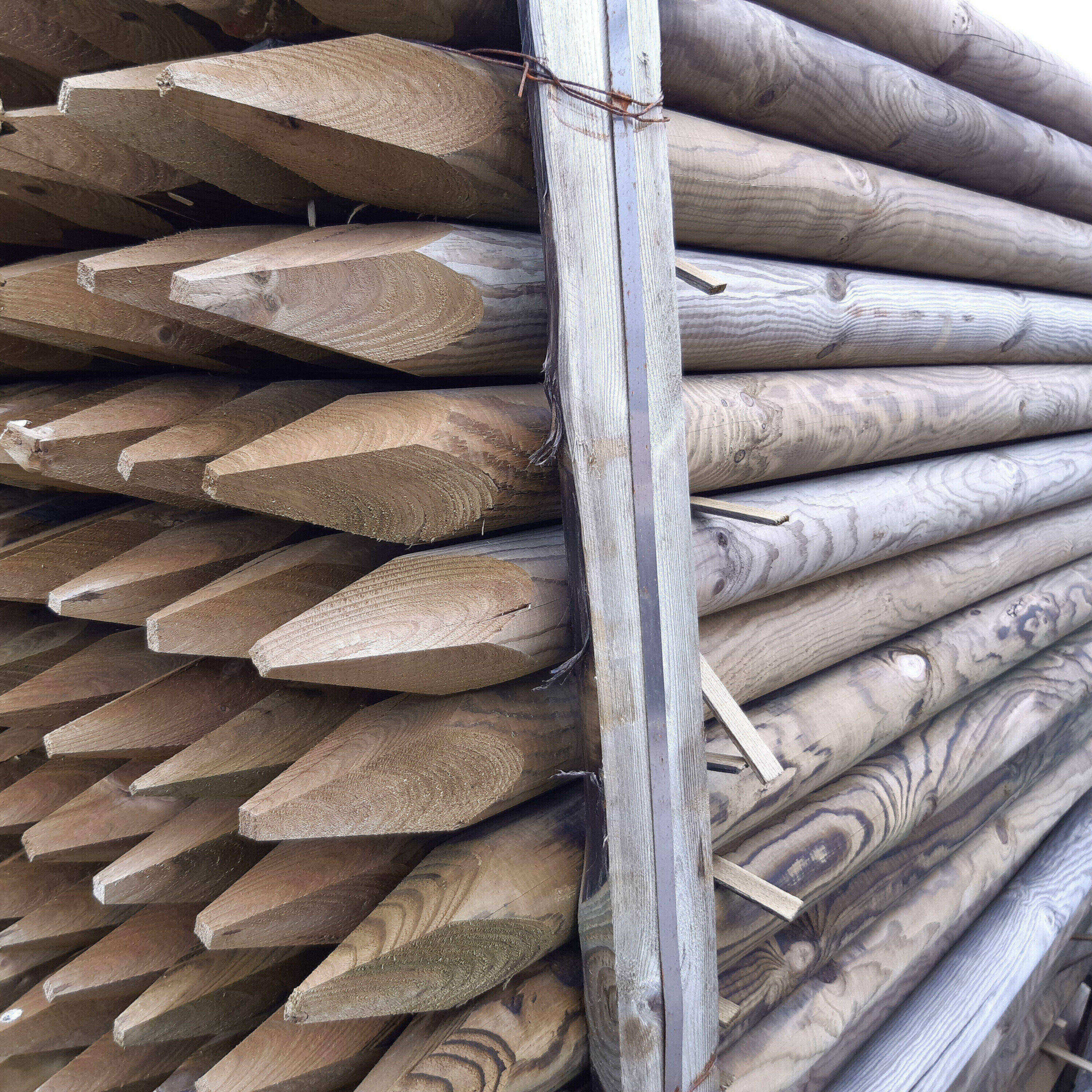Dřevěná kulatina hladce ofrézovaná, na jednom konci upravená fazetou a na druhém špičkou pro snadné zaražení do země.